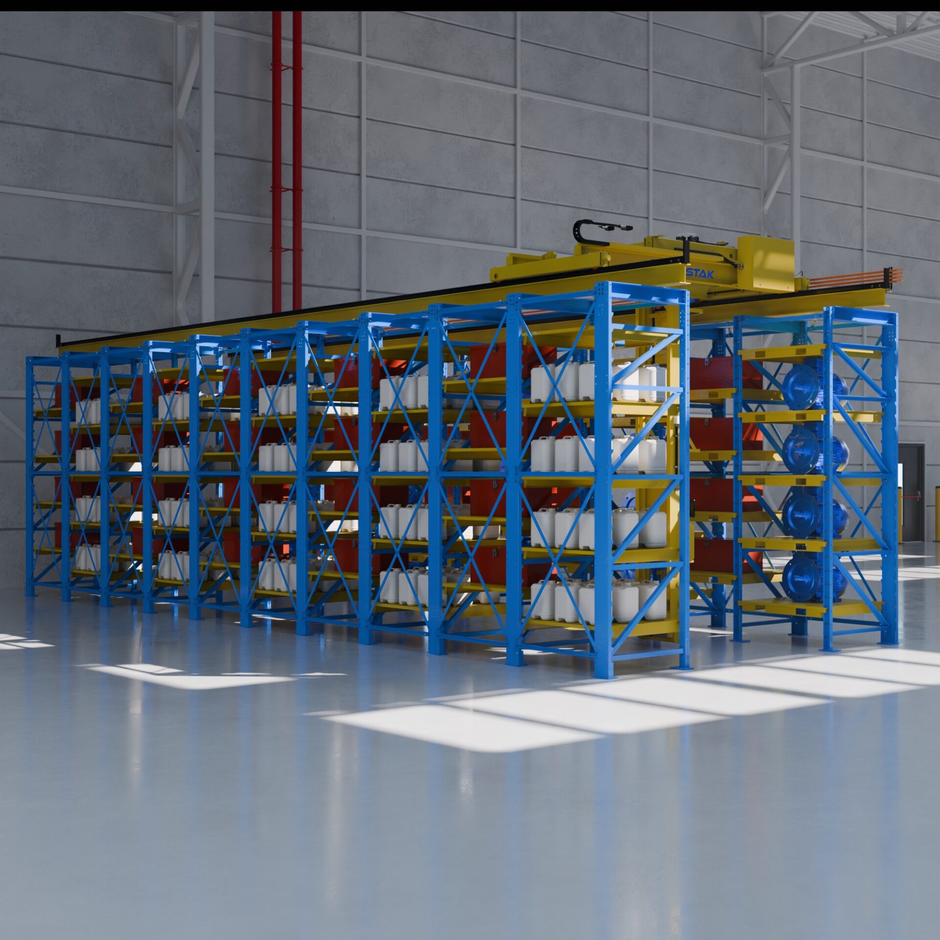 Instantly flexible racking with integrated storage crane creates a safer work flow and better space utilization