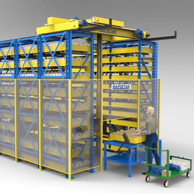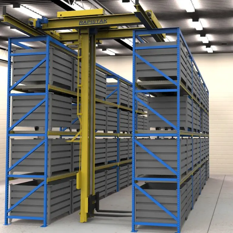 Store smarter and move faster with Autostak. Integrated compact stacker crane is available from 2,000 – 20,000 lb lift capacities. Fully automated, forklift-free operation increases your process speed and safety.